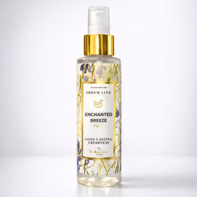Awaken your senses with the magical aura of Sheem Line. "Enchanted Breeze" is a premium scented body mist designed for those who appreciate a light, ethereal, and captivating scent. Created under the expert guidance of Dr. Ayesha Lasani, this 150ml mist provides a refreshing burst of "long lasting freshness" that carries you through the day with effortless grace.