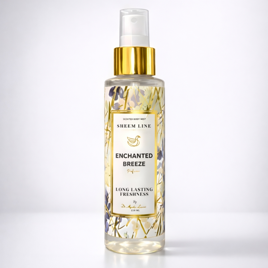 Awaken your senses with the magical aura of Sheem Line. “Enchanted Breeze” is a premium scented body mist designed for those who appreciate a light, ethereal, and captivating scent. Created under the expert guidance of Dr. Ayesha Lasani, this 150ml mist provides a refreshing burst of “long lasting freshness” that carries you through the day with effortless grace.