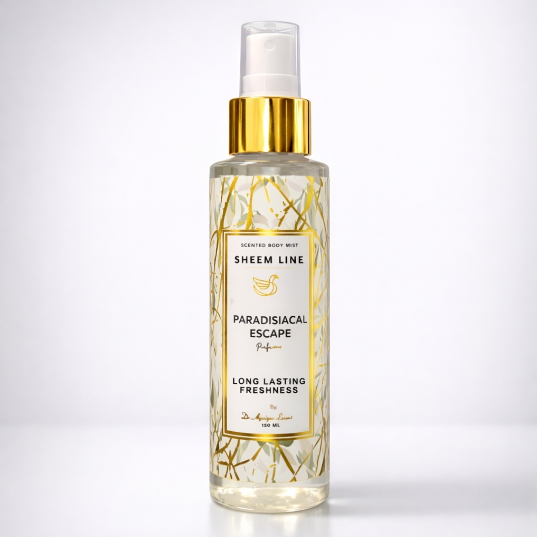 Unwind in a tropical paradise with Sheem Line. “Paradisiacal Escape” is an exotic scented body mist designed for those who love fresh, nature-inspired aromas. Expertly developed by Dr. Ayesha Lasani, this 150ml mist delivers a serene and refreshing scent that transports you to a peaceful island getaway.